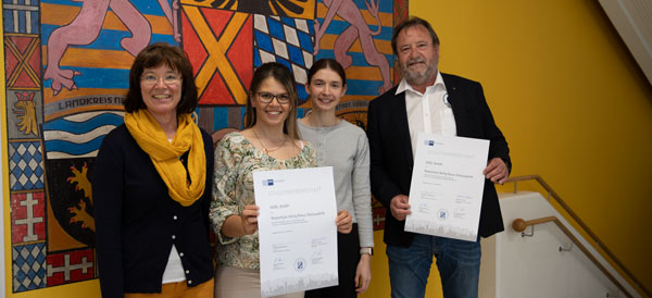 v.l.n.r.: Andrea Hutzler, Frau Marlene Lindner (Firma Sigel), Frau Julia Merkel (IHK) und Schulleiter Wolfgang Mühldorfer