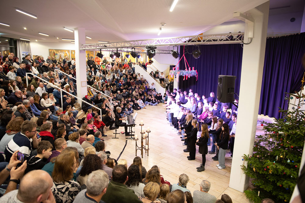 Rund 200 Schülerinnen und Schüler der 5. und 6. Klassen, Mitglieder der Musical AG, das Saxophonensemble sowie die Blaskapelle musizierten zusammen und gestalteten gemeinsam eine besinnliche, musikalisch äußerst vielseitige und sehr abwechslungsreiche Stunde.